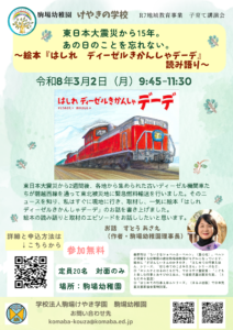 ◎タイトル:『東日本大震災から15年。あの日のことを忘れない。~絵本「はしれ ディーゼルきかんしゃデーデ」読み語り~』